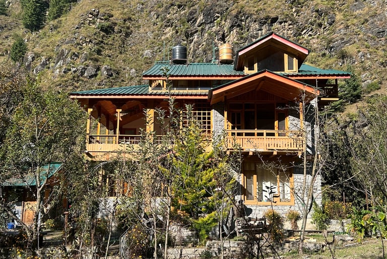 Discover our serene riverside banya in the heart of Himachal Pradesh.